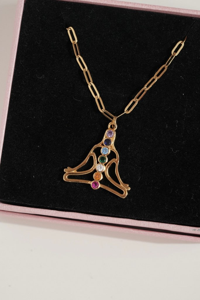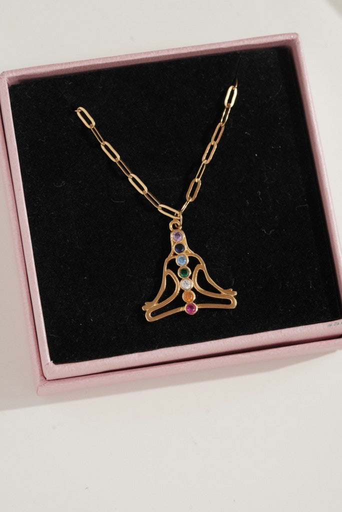 Çelik Çakra Taşlı Meditasyon Figürlü Kolye