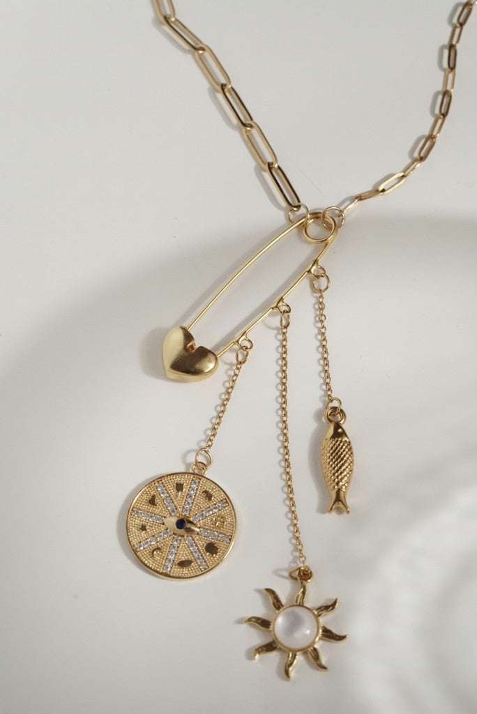çelik charm kolye, sarkıt detaylı kolye, modern çelik kolye, zarif kadın kolye, özel tasarım charm kolye, dikkat çekici çelik kolye, paslanmaz çelik kolye, günlük kullanıma uygun kolye, sade şık kolye, modern kadın takı