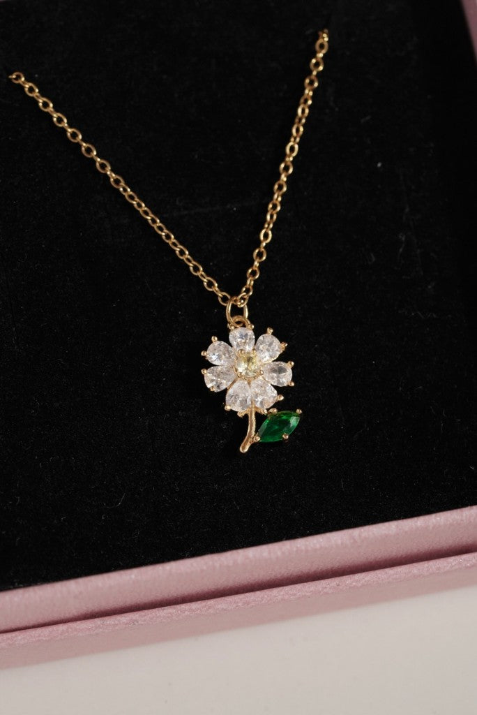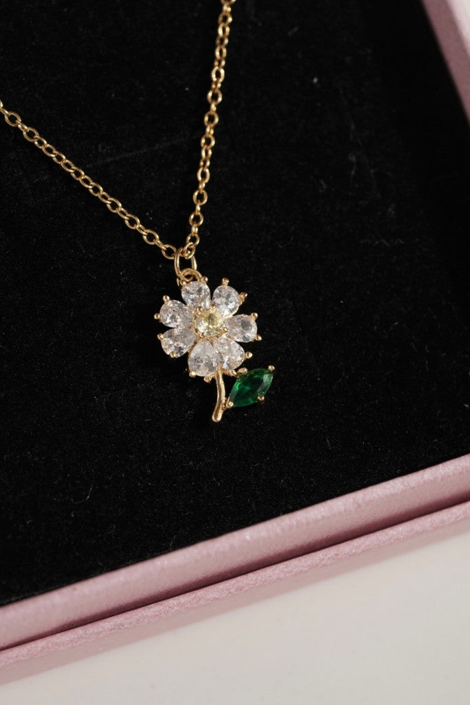 çelik çiçek kolye, taş detaylı çiçekli kolye, zarif çelik kolye, çiçek figürlü takı, modern kadın kolye, paslanmaz çelik kolye, estetik çiçek kolye, dikkat çekici taşlı kolye, feminen çelik kolye, özel tasarım kadın kolye