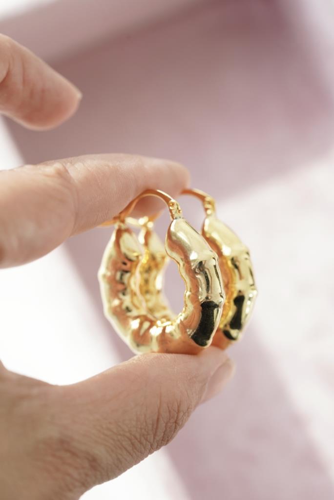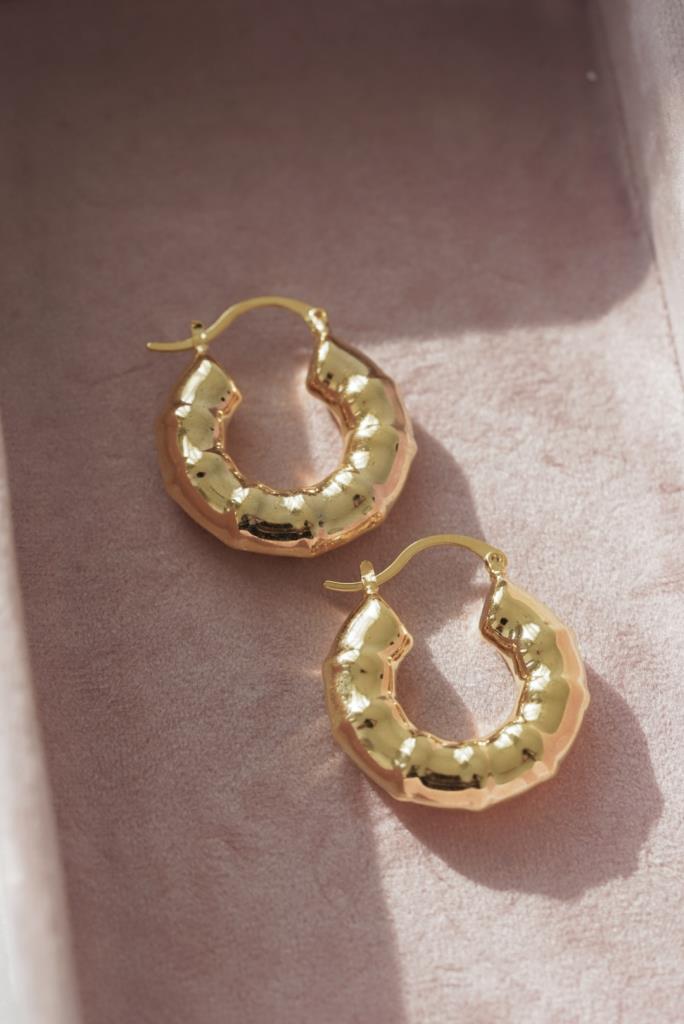 dolgulu halka küpe, altın halka küpe, modern halka küpe, şık küpe, zarif küpe, klasik halka küpe, altın kaplama küpe, parlak küpe, özel tasarım takı, günlük küpe, zamansız küpe, gösterişli halka küpe