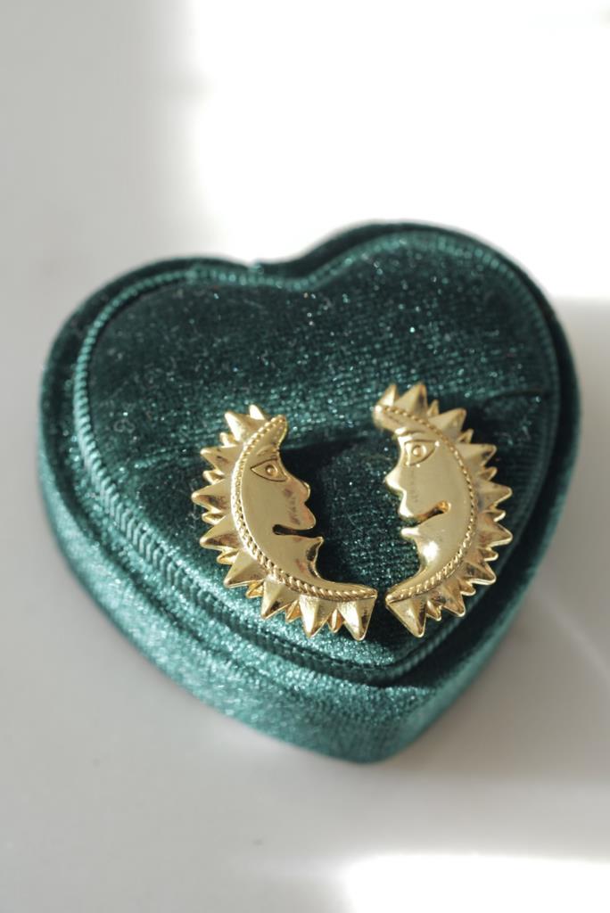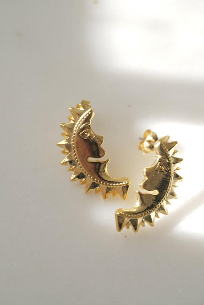 güneş ve ay küpe, gökyüzü temalı küpe, güneş figürlü küpe, ay figürlü küpe, zarif küpe, şık küpe, anlamlı küpe, modern tasarım küpe, mistik küpe, özel tasarım takı, günlük küpe, romantik küpe