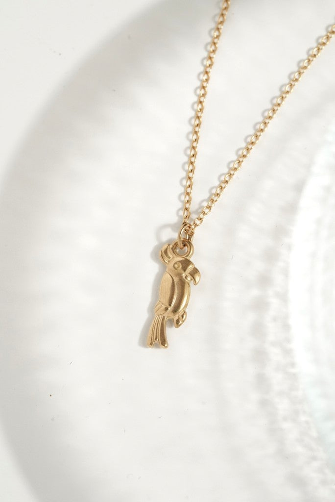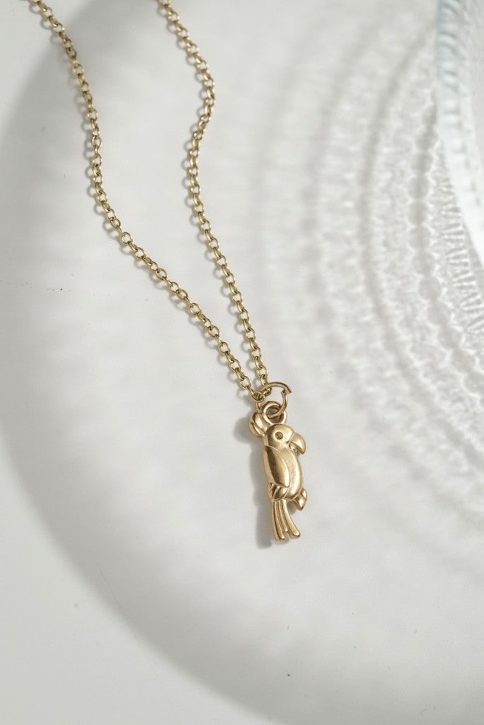 paslanmaz çelik papağan kolye, tropikal figürlü kolye, renkli charm kolye, modern çelik kolye, doğadan ilham alan takı, yazlık kadın kolye, dikkat çekici çelik kolye, papağan figürlü takı, paslanmaz çelik takı, enerjik tasarım kolye