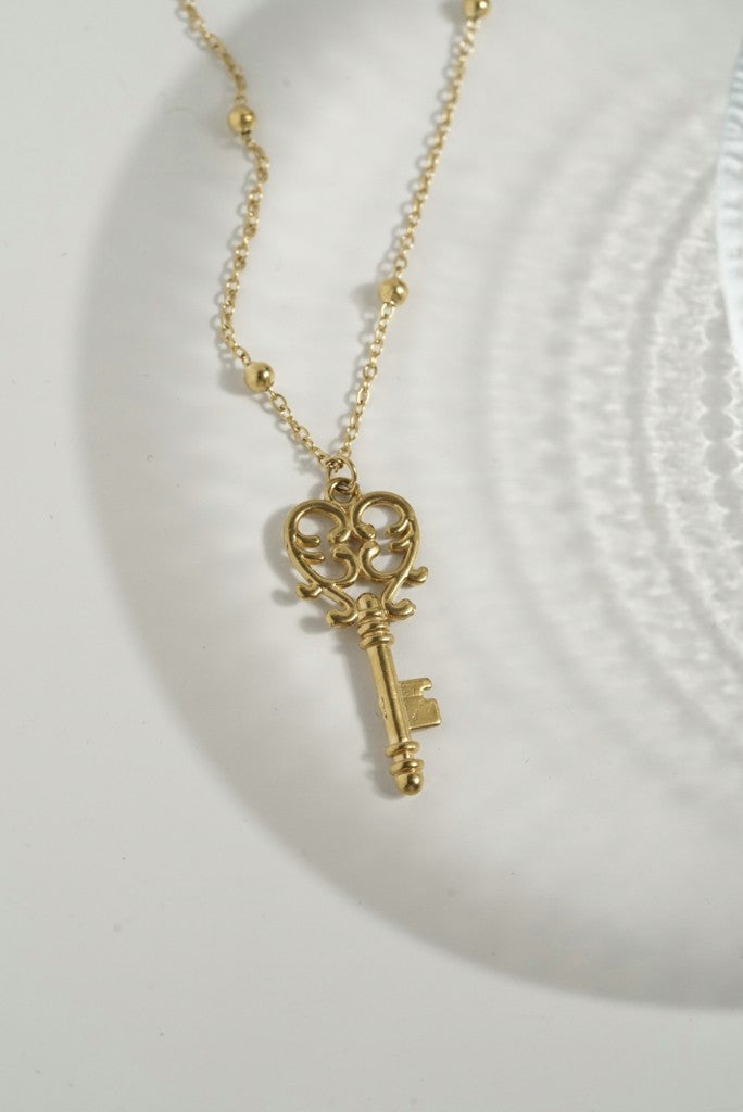 paslanmaz çelik anahtar kolye, vintage anahtar kolye, nostaljik tasarım kolye, anahtar figürlü takı, modern çelik kolye, zarif kadın kolye, özel tasarım kolye, dikkat çekici çelik kolye, paslanmaz çelik takı, gizemli anahtar kolye
