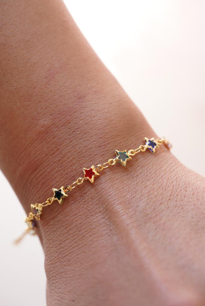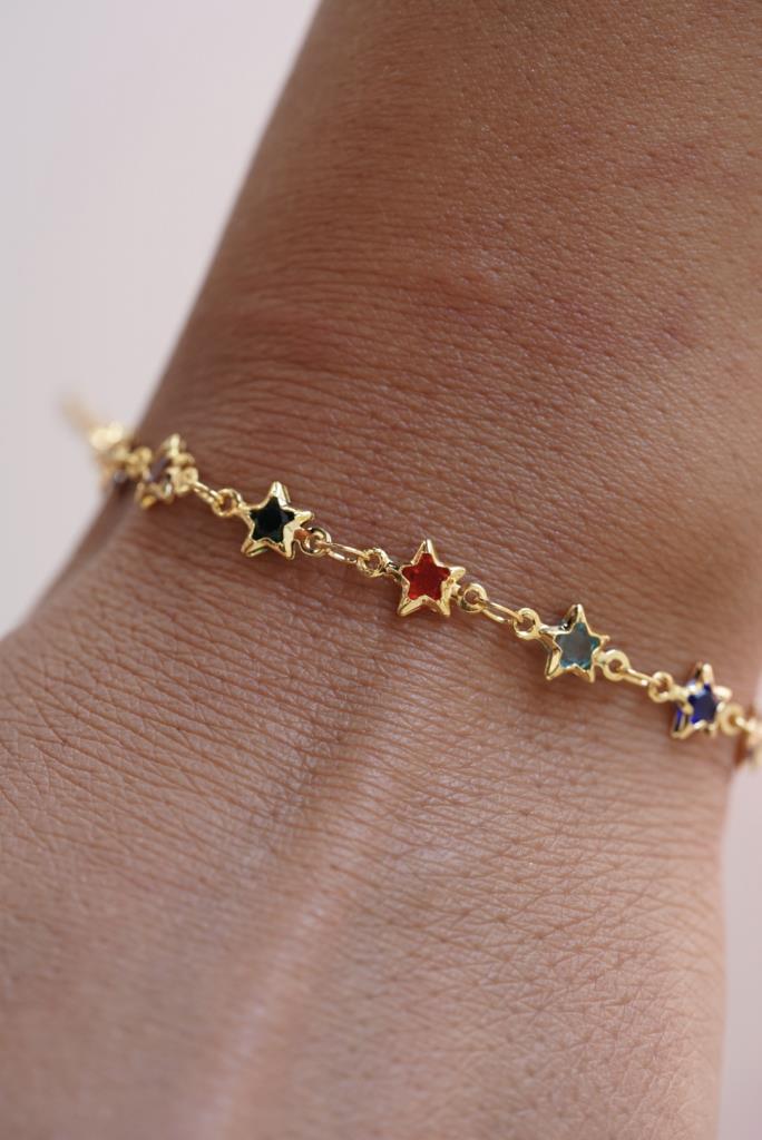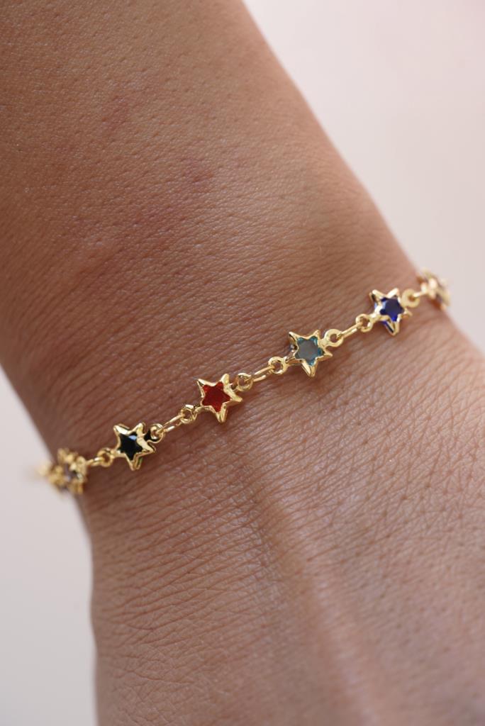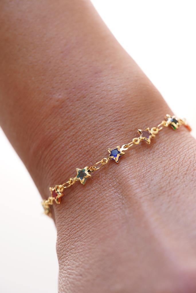 renkli yıldız bileklik, taşlı bileklik, yıldız motifli bileklik, şık bileklik, zarif bileklik, renkli taşlı bileklik, modern bileklik, özel tasarım bileklik, zarif takı, şık takı.