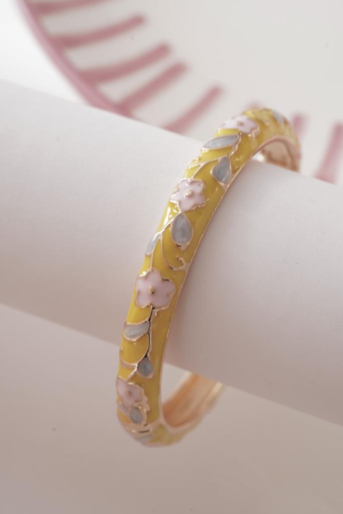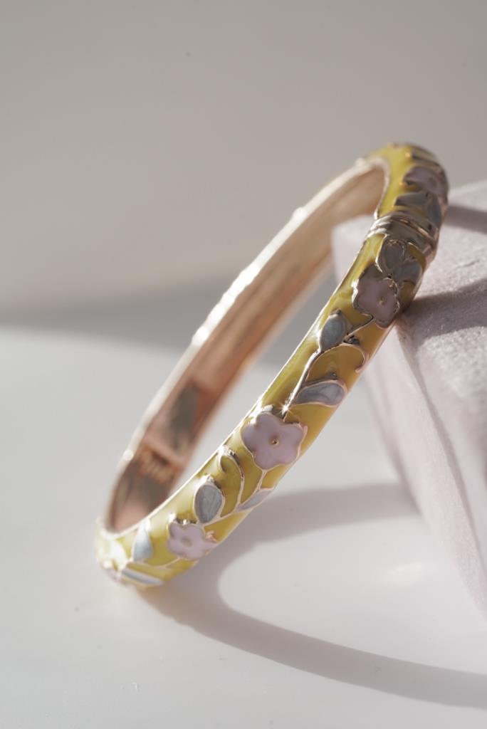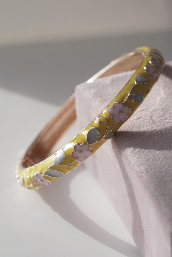 sarı çiçekli bileklik, mineli bileklik, çiçek figürlü bileklik, kelepçe bileklik, zarif bileklik, modern bileklik, şık bileklik, özel tasarım bileklik, zarif takı, çiçekli takı.